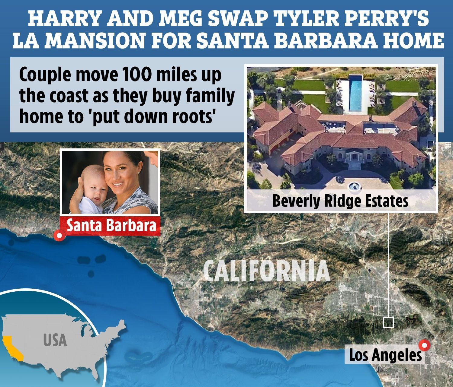La pareja y el pequeño Archie estuvieron viviendo como invitados de Tyler Perry en una mansión de Beverly Hills y tomaron la decisión de echar raíces en Santa Bárbara, donde compartirán vecindario con varias estrellas del cine y la televisión.