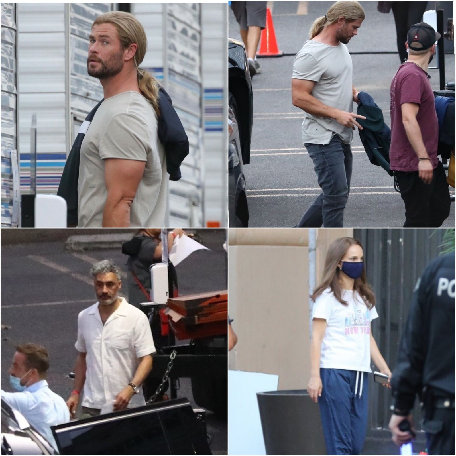 A continuación se pueden fotos de Waititi y Hemsworth por un lado, y también de Natalie Portman, quien estará de regreso para dar vida a Jane Foster. Las imágenes fueron proporcionadas por el usuario de Twitter, Mighty Foster. Allí se puede ver a los actores con una apariencia muy similar a la de Thor: The Dark World, por lo que todo parece indicar que podrían estar filmando un flashback.