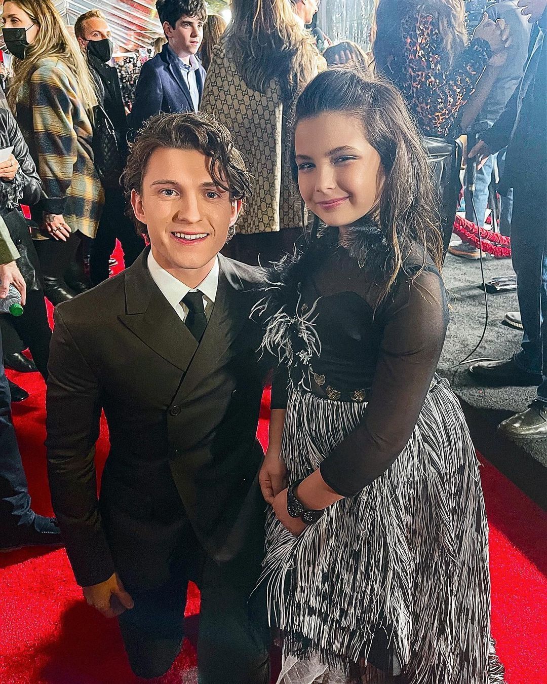 Se trata de Lexi Rabe, la niña que interpretó a Morgan Stark, la hija de Pepper Potts y Tony Stark. La actriz subió las fotos de la premiere, y posó junto a Tom Holland, Zendaya, Jacob Batalon, Marisa Tomei, Jon Favreu, Benedict Cumberbatch, Jamie Foxx, J. K. Simmons, Willem Dafoe, entre otros.