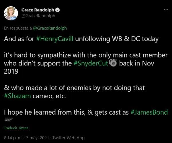 Grace Randolph es una influencer estadounidense que realizó una investigación y dio con que Henry Cavill dejó de seguir en las redes sociales a las cuentas de Warner Bros y DC Comics.