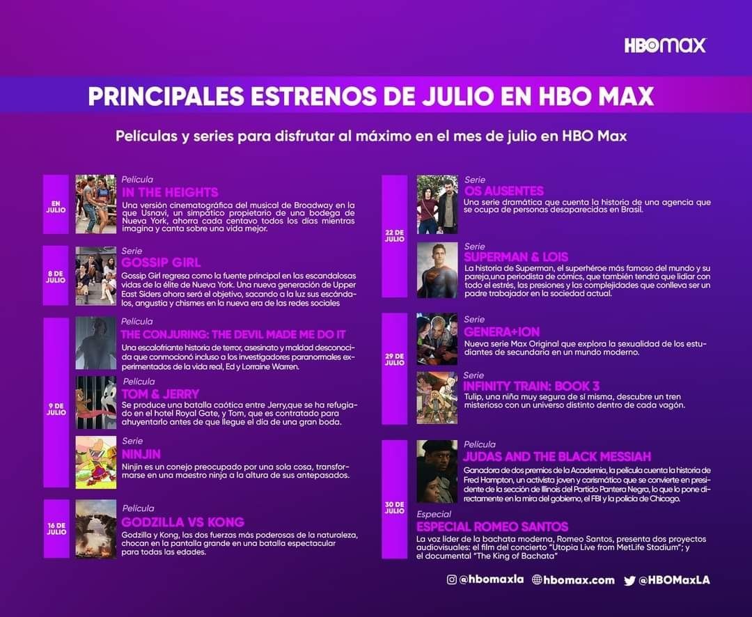Las sorpresas no terminan, ya que durante el mes también se presentará el regreso de “Gossip Girl” y la saga completa de “Los Juegos del Hambre”. Como frutilla del postre para el mes, también se confirmó que llegará el musical con Lin Manuel Miranda, "En el Barrio"