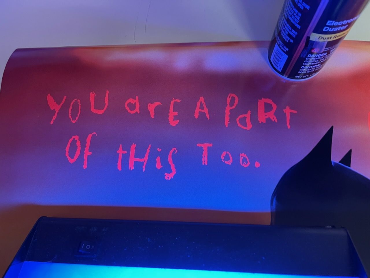 Nervatel, un usuario de Twitter, fue el encargado de hacer este interesante descubrimiento. Esta persona tomó uno de los pósters más recientes y los expuso a luz ultravioleta, al ver la gráfica se llevó la sorpresa de encontrar un mensaje oculto.