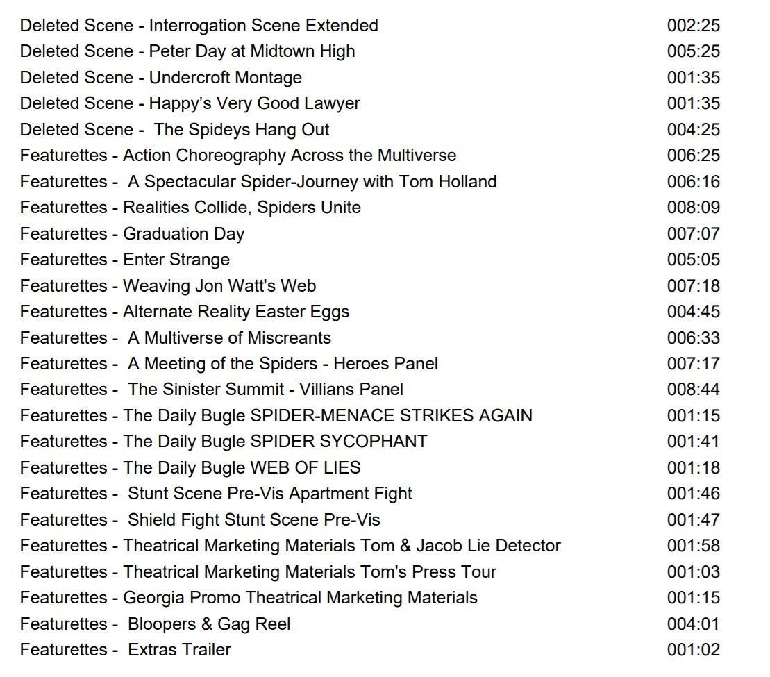 Ahora la buena noticia para los fans es que la llegada del Blu-ray de No Way Home será con todo. Gracias a un usuario de Twitter, sale a la luz todo el contenido extra que trae el filme y se trata de aproximadamente 100 minutos de material. Uno de ellos es un clip de 4 minutos titulado “The Spideys Hangout” y al parecer muestra una escena de los tres héroes antes de la batalla final en la estatua de la libertad. La presencia de Matt Murdock aka Daredevil (Charlie Cox) también tiene su momento extra, ya que se incluyen dos escenas donde el abogado ayuda a Peter (Tom Holland) y también a Happy Hogan (Jon Favreau).