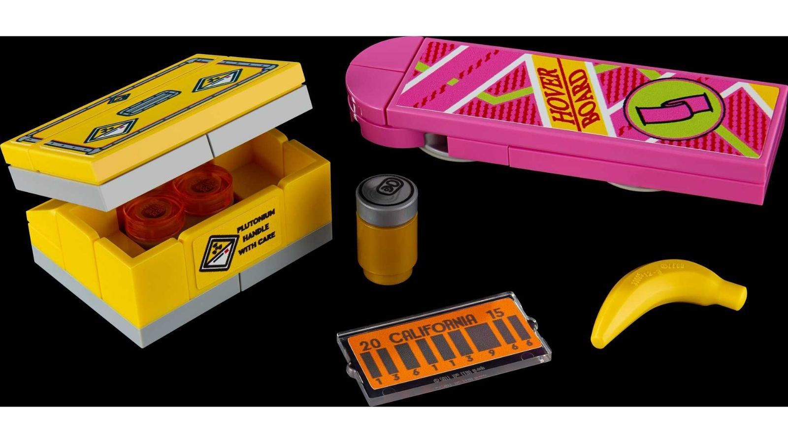 Las sorpresas no terminan allí, ya que el set incluye algunos objetos preciados de la saga, como el contenedor de plutonio, las placas “Outatime” del presente y el futuro de la máquina del tiempo, algunos desechos para Mr. Fusion y la siempre deseada hoverboard que Marty trae del futuro.