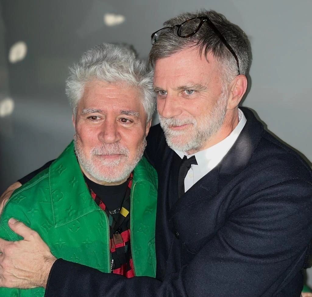 Fuera de los eventos de la ceremonia propia, Pedro nos comenta también cuáles fueron sus encuentros favoritos con otros cineastas y actores durante las famosas “after-parties” de los Oscars. En la fiesta de Saint Laurent, el cineasta español se encontró con un montón de nominados, algunos de ellos fans de su trabajo. “No me acostumbro a que la gente me diga ‘crecí con tus películas’, no solo porque me hace sentir viejo, eso es irrelevante, sino por pura modestia.” dice Almodóvar. “Uno de mis fans es Joachim Trier, el director de la deliciosa The Worst Person in The World. Me cuenta cómo le gustaban Hábitos oscuros (1983) y Matador (1985), lo que lo convierte en un verdadero fan histórico, y no un apreciador modesto.”