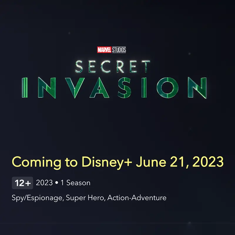 El primer episodio de Invasión Secreta se estrenará el 21 de junio de este año, por la plataforma de streaming Disney Plus. "Secret Invasion mostrará a una facción de Skrulls que cambian de forma y que se han estado infiltrando en la Tierra durante años", reza la breve sinopsis oficial lanzada por el estudio el año pasado. El estreno de Invasión secreta ha sido modificado en varias oportunidades.