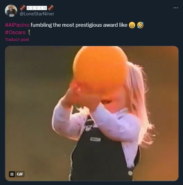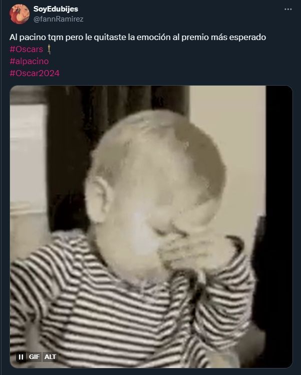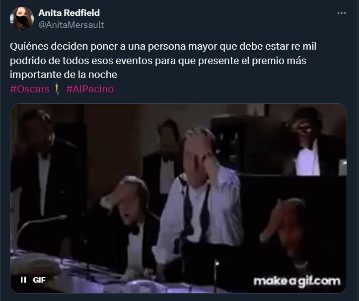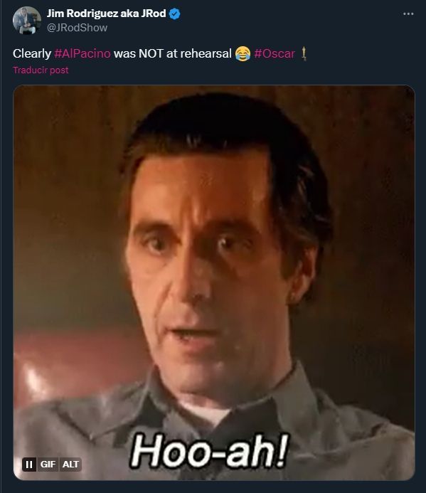 Como suele suceder con este tipo de situaciones, las reacciones en las redes sociales no se hicieron esperar y los memes rápidamente comenzaron a multiplicarse. A continuación repasaremos algunos de los mejores memes tras la aparición de Al Pacino en los Premios Oscar.
