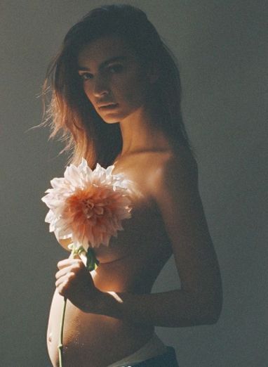 En esta ocasión, Emily decidió lucir su embarazo en una serie de publicaciones en las que se la vio sin nada de ropa y mostrando su incipiente panza mientras se cubre con sus manos para evitar la censura de Instagram.