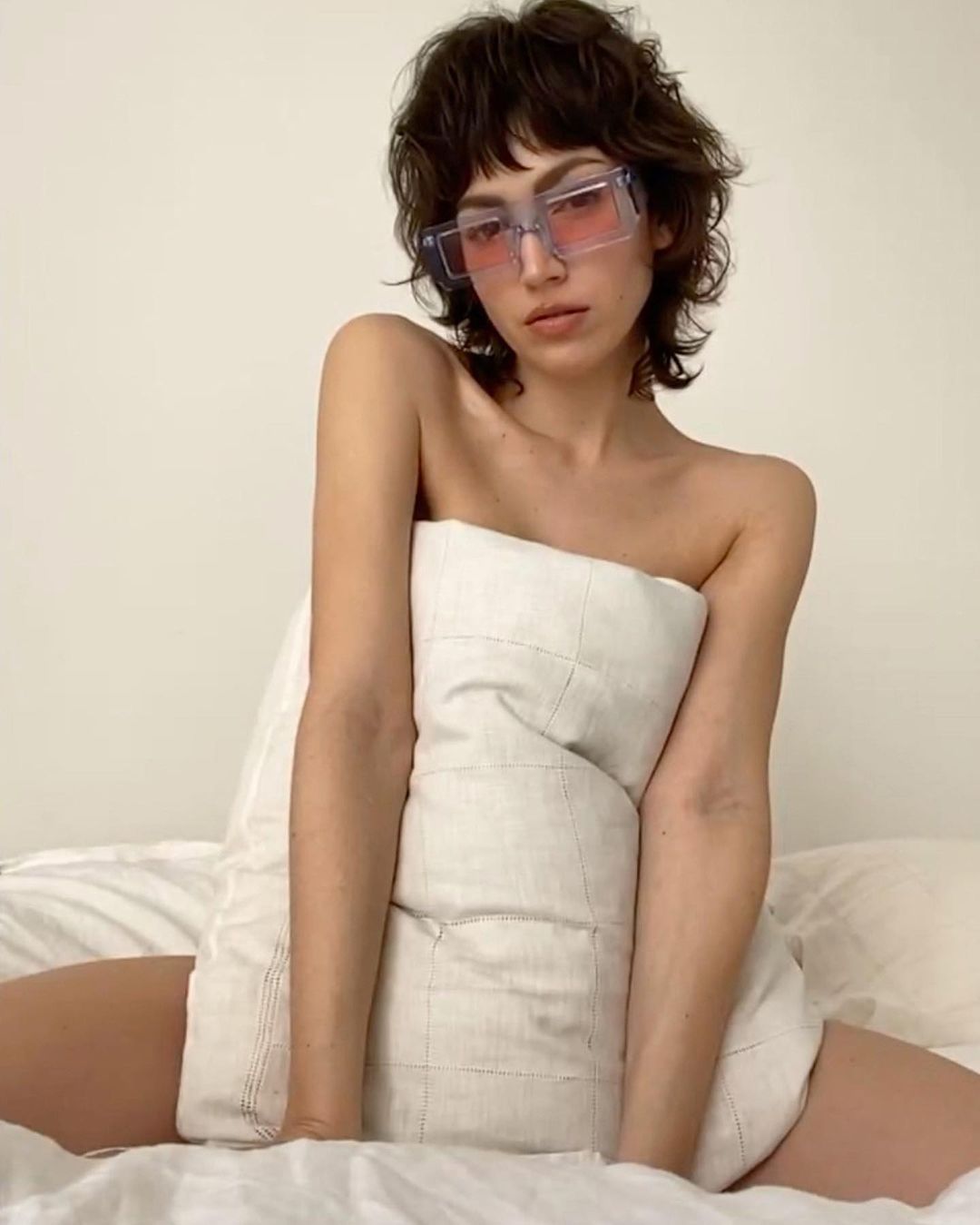 Úrsula Corberó se fotografió tapada sólo con la almohada en la cama