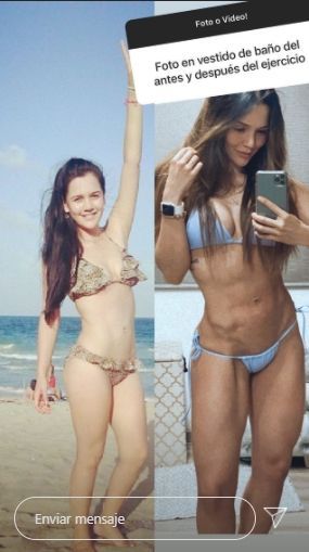En esta ocasión, la actriz de 'La ley del corazón' compartió en su cuenta de Instagram una serie de historias con fotos muy sensuales de acuerdo a lo que le pedían sus seguidores. La historia que más llamó la atención fue una en la que mostró su marcado abdomen mientras lucía un diminuto bikini celeste.