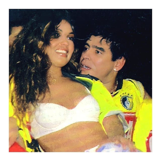 Thalía también compartió una foto junto al ídolo argentino en el Carnaval de Río de Janeiro en 1998. En la foto se lo ve a Diego muy divertido mientras le susurra algo en el oído a la cantante mexicana.