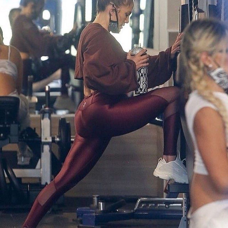 En las fotos podemos ver como la Diva se encuentra trabajando su cuerpo y para hacerlo lleva un impresionante outfit de gym, el cual consta de calza y remera crop top. La calza es la que se lleva todas las miradas, ya que al ser ajustada realza todas las curvas de JLo.