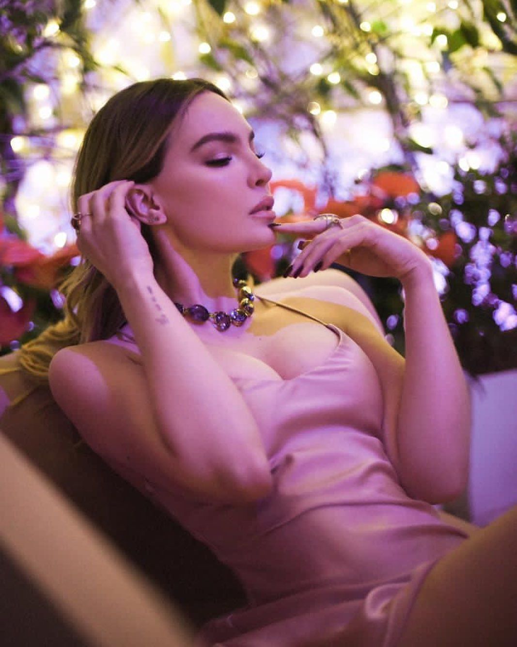 En la foto que compartió Belinda en Instagram, se la ve luciendo un despampanante vestido que marca a la perfección su escultural figura con un profundo escote que dejó sin aliento a sus seguidores.