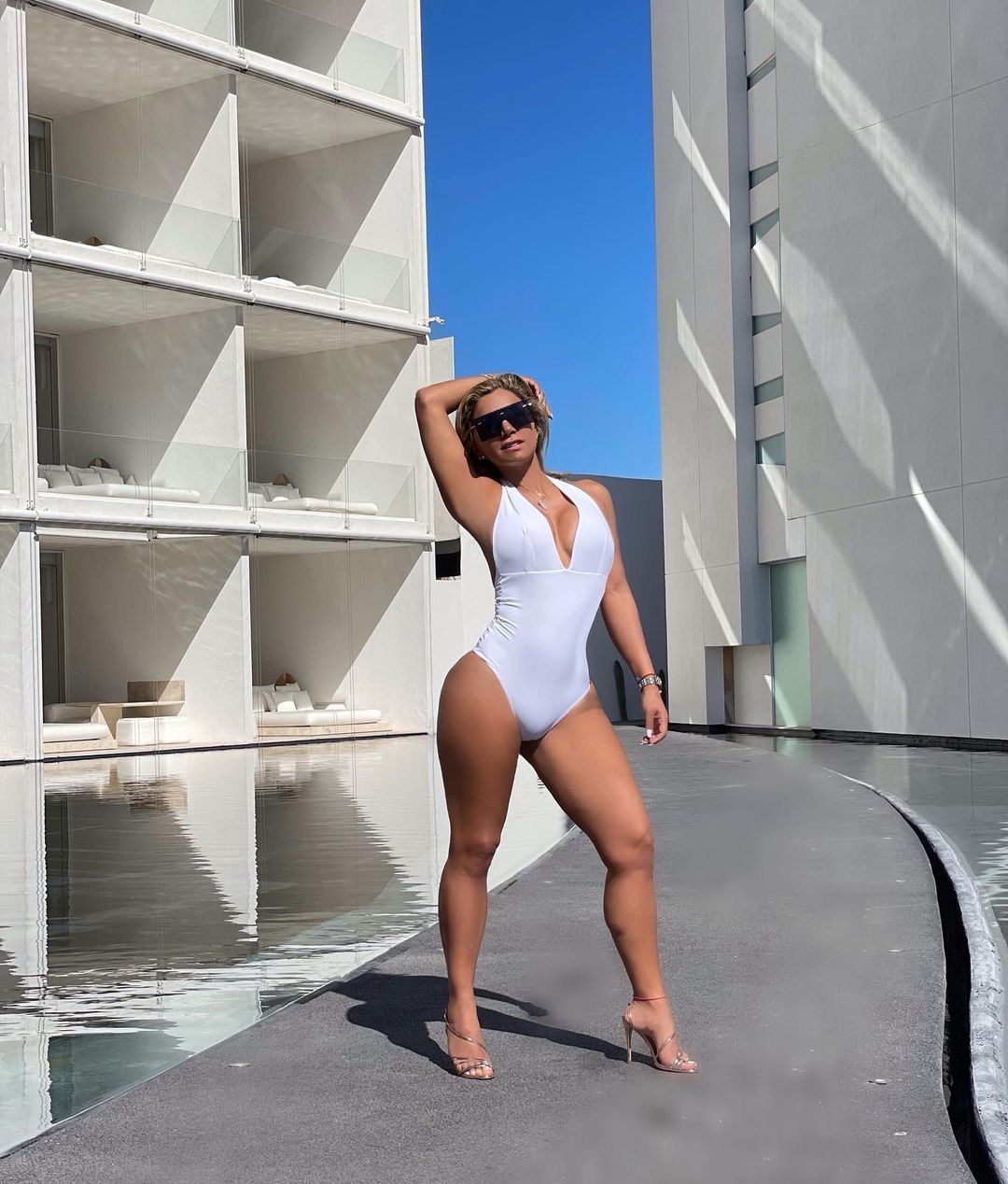 Aleida Nuñez causó sensación con un ajustadísimo traje de baño blanco