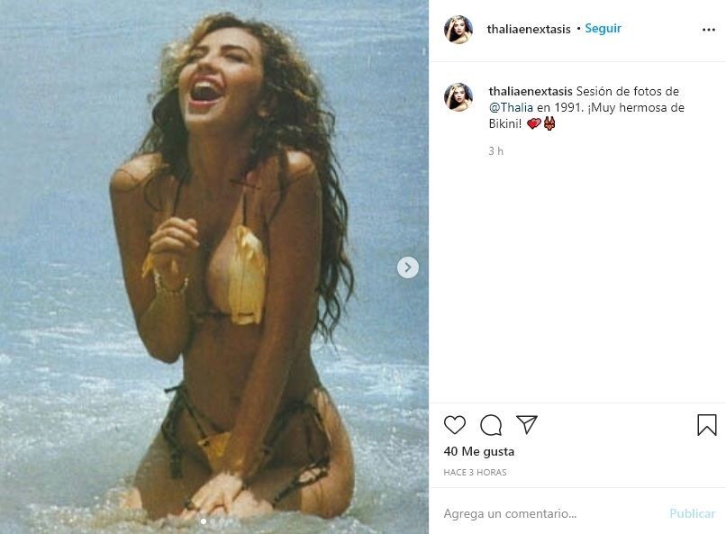 Una fan page de Thalía en Instagram publicó este lunes una foto del inicio de la vida pública de la mexicana. Específicamente, se trata de una sesión de fotos que tuvo en la playa en el año 1991.