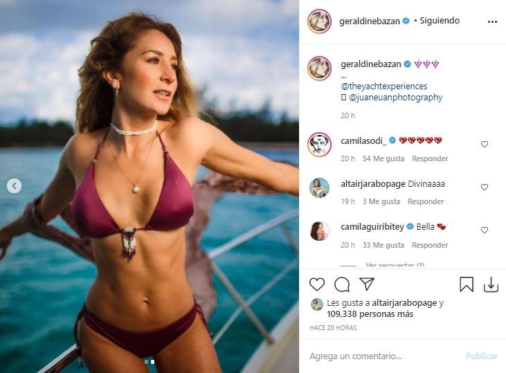 La actriz y presentadora mexicana Geraldine Bazán deslumbró a todos este martes al compartir una serie de fotos luciendo un pequeño bikini y presumiendo lo bien qué está a sus 37 años.