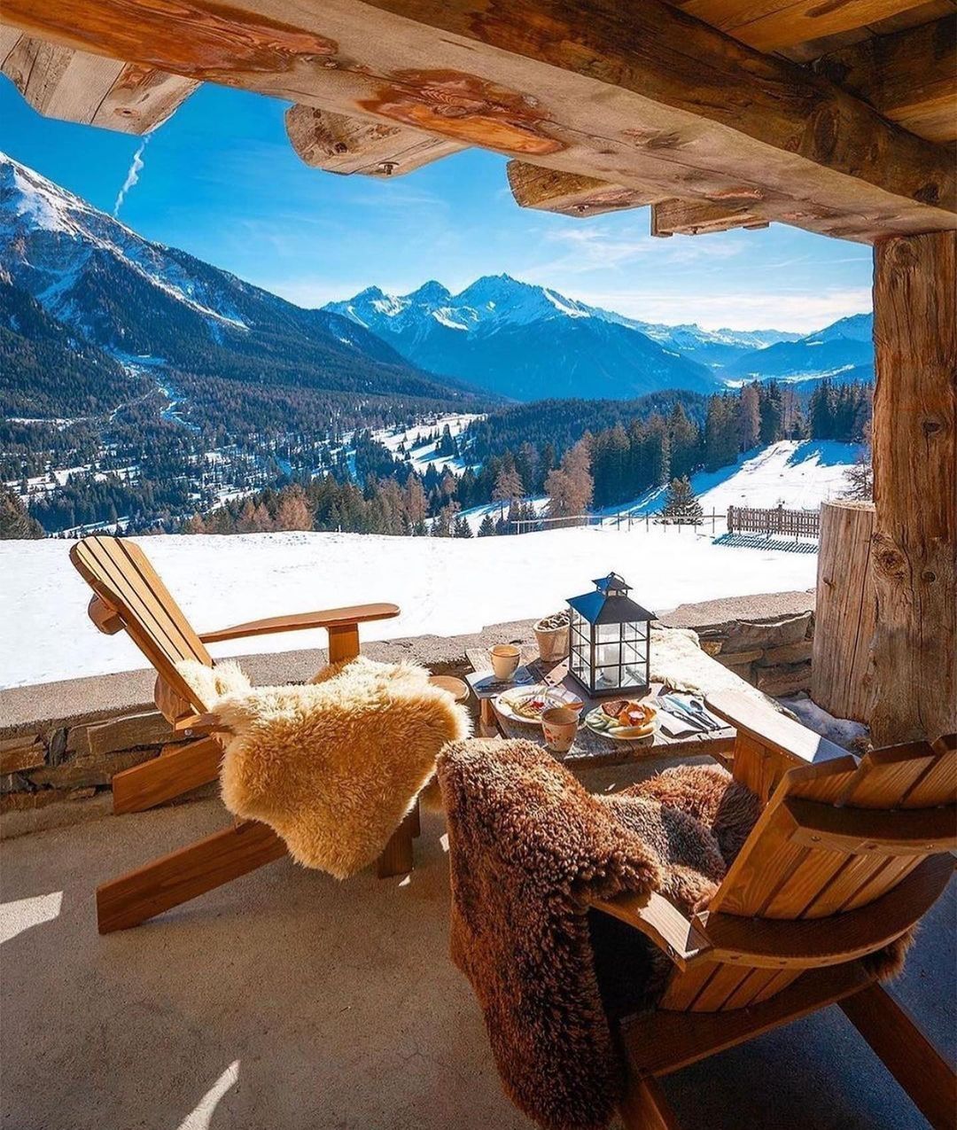 Ahora, cambió completamente de clima. Publicó una imagen desde el pueblo de Vail, en Colorado. En ella, se puede apreciar una espectacular vista de las montañas Rocosas desde una exlusiva cabaña. Como epígrafe, escribió:"Humor para los próximos días ☺️❄️".