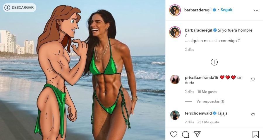 De Regil tiene casi 8 millones de seguidores en Instagram. Cada posteo suyo se hace viral rápidamente y siempre logra conquistar a sus seguidores con cada posteo. La actriz mexicana se comparó con Tarzán, un histórico personaje de Disney.