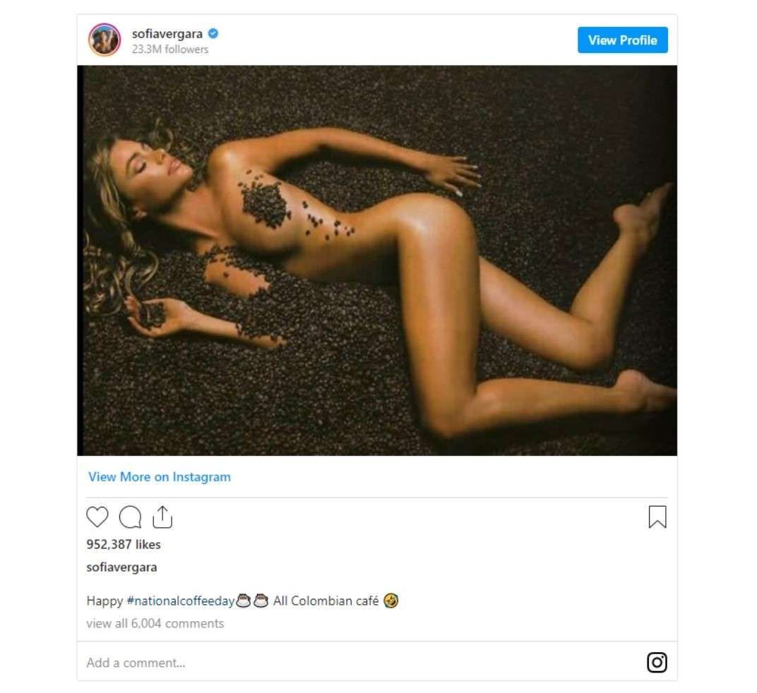 A través de su cuenta oficial de Instagram, Sofía Vergara decidió homenajearle tributo al café, el cual es tan importante dentro de Colombia y que también se realiza en dicho país. Para eso, la actriz escogió una imagen bastante peculiar.