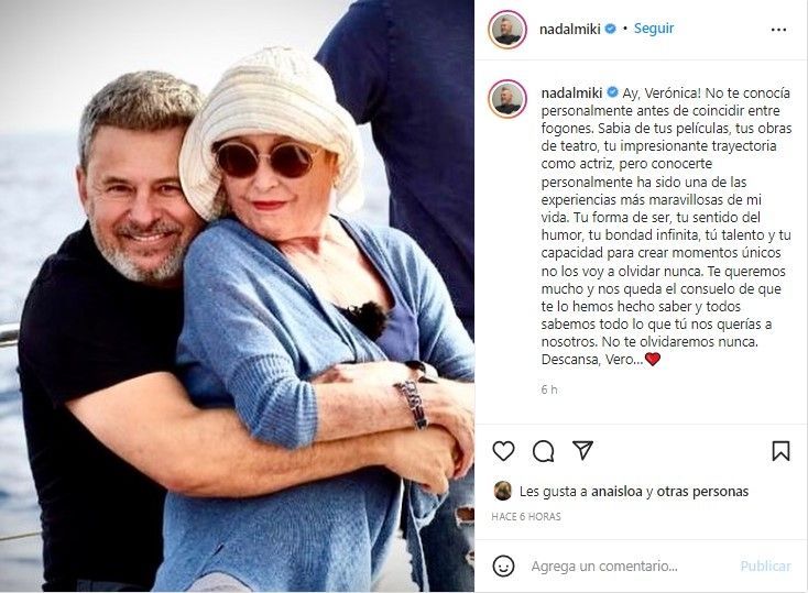 Uno de los vencedores del certamen, y con quien tenía los contrapuntos más divertidos, Miki Nadal, escribió: “¡Ay, Verónica! No te conocía personalmente antes de coincidir entre fogones. Sabía de tus películas, tus obras de teatro o tu impresionante trayectoria como actriz, pero conocerte personalmente ha sido una de las experiencias más maravillosas de mi vida. Tu forma de ser, tu sentido del humor, tu bondad infinita, tu talento y tu capacidad para crear momentos únicos no lo voy a olvidar nunca. Te queremos mucho y nos queda el consuelo de que te lo hemos hecho saber y todos sabemos todo lo que tú nos querías a nosotros. No te olvidaremos nunca”.