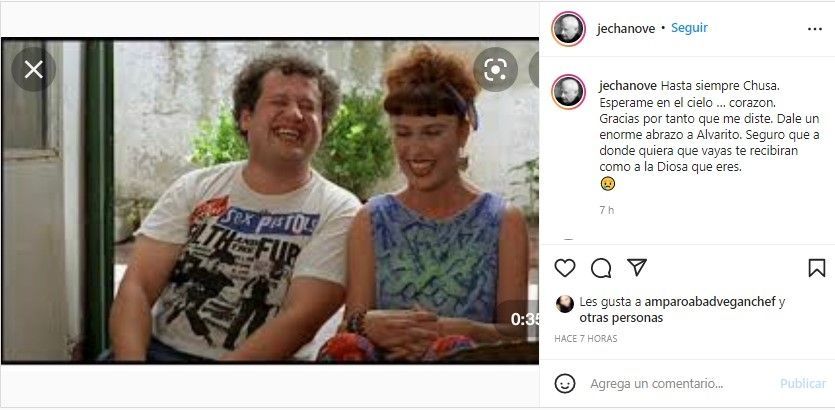 "Hasta siempre Chusa. Espérame en el cielo. Gracias por tanto que me diste. Dale un enorme abrazo a Alvarito. Seguro que a donde quiera que vayas te recibirán como a la Diosa que eres", la despidió Juan Echanove.