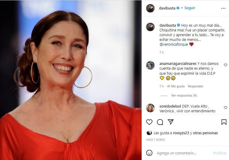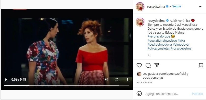 “Adiós amiga. Adiós mami. Gracias por todo lo vivido”, escribió Pepón Nieto. Mientras que Rossy de Palma, con quien compartió protagónico en “Kika”, puso: “Adiós Verónica. Siempre te recordaré así Maravillosa Dulce y en Estado de Gracia que siempre fué y será tu Estado Natural”.
