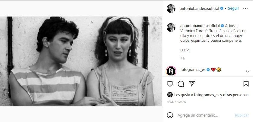 “Trabajé hace años con ella y mi recuerdo es el de una mujer dulce, espiritual y buena compañera”, agregó Antonio Banderas con una imagen de la película que compartieron: “Bajarse al moro”.