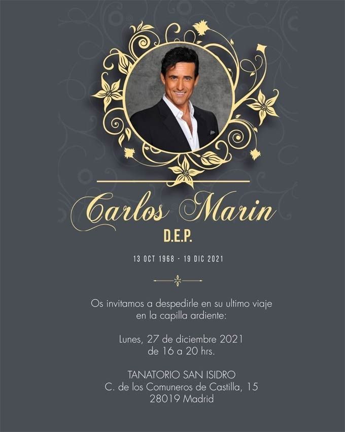 El traslado del cuerpo sin vida de Marín fue realmente complicado debido a la causa de su muerte. "Llegará a España en un féretro sellado por tratarse de COVID, por lo que no se podrá abrir para el velatorio; pero que todo el mundo sepa que Carlos estará vestido con su traje favorito de Armani, que usaba para las actuaciones, para que pueda ir al cielo presentable para ir a cantar ahora con los ángeles", agrega su hermana, encargada de todos los papeles para expatriar al artista.