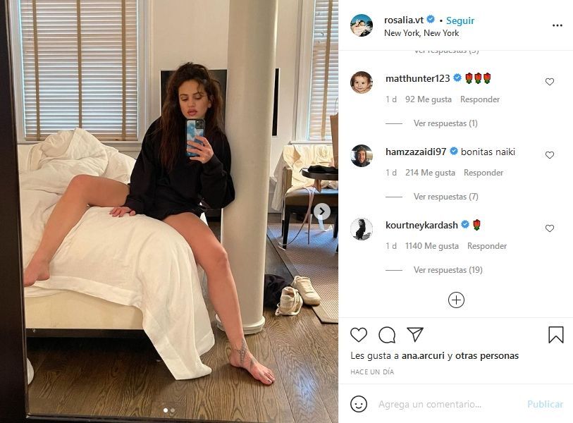 Rosalía se fotografió desde la cama y provocó la reacción de Kourtney Kardashian