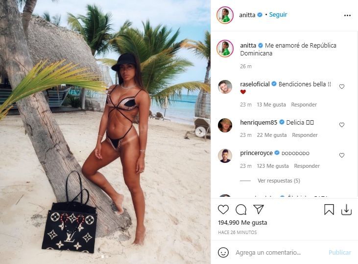 No conforme con el baile que le quitó el aliento a todos, Anitta también compartió una serie de fotos disfrutando de las playas de República Dominicana y luciendo un pequeño bikini negro que generó suspiros entre sus fanáticos.