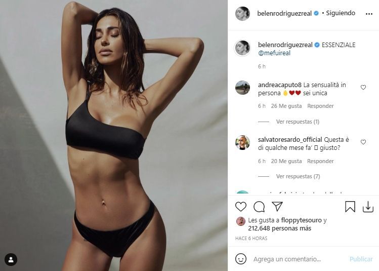En esta ocasión, Belén sorprendió a sus millones de seguidores compartiendo una impactante foto luciendo un pequeño bikini negro que enamoró a sus fanáticos. "ESSENZIALE", fue la frase con la que la actriz acompañó la publicación en su cuenta de Instagram.