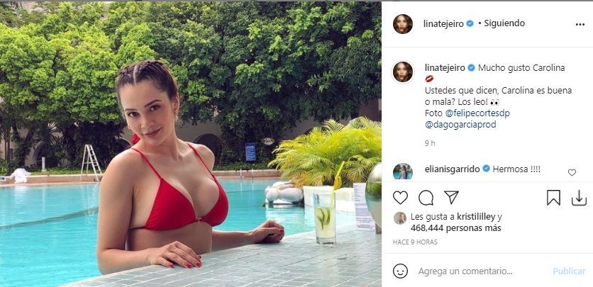 En la foto que compartió Lina, se la ve luciendo un pequeño bikini rojo que le quitó el aliento a sus millones de seguidores. Muchos recordaron las clases de pole dance que viene tomando Lina y se preguntaron si Carolina bailará en el caño en el proyecto que la actriz está filmando.