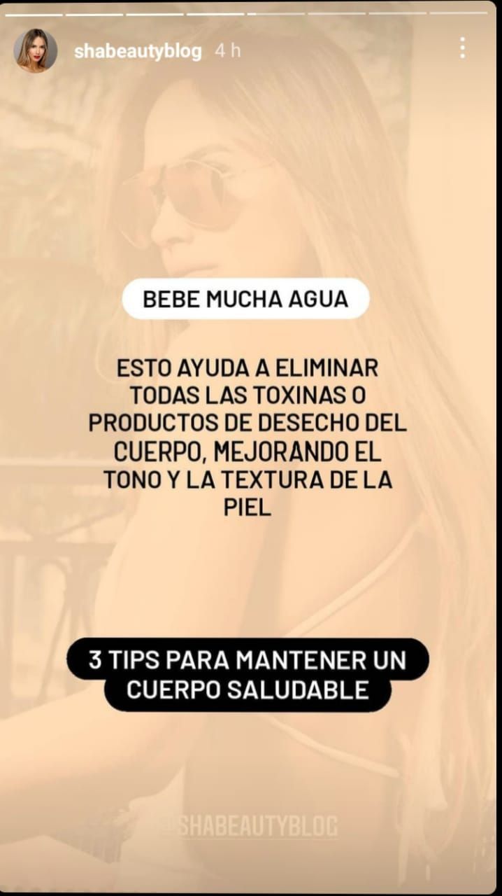 De esta forma, hace tan solo unas horas, Shannon publicó una serie de historias en las cuales comparte con sus millones de seguidores tres importantes consejos para lograr mantener un cuerpo verdaderamente saludable. El primero de ellos es beber mucha agua ya que “esto ayuda a eliminar toxinas o productos de desecho del cuerpo, mejorando el tono y la textura de la piel”.