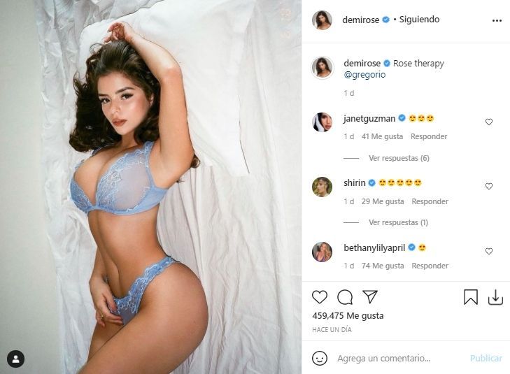 En esta ocasión, Demi enamoró a sus millones de seguidores al compartir una foto desde la cama luciendo un conjunto de lencería que le quitó el aliento a más de uno. "Terapia con Rose", fue el divertido mensaje con el que la modelo británica acompañó la publicación.
