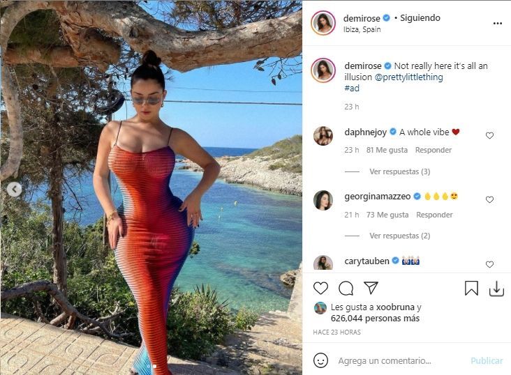 Demi Rose presumió su vida en Ibiza con un vestido demasiado revelador