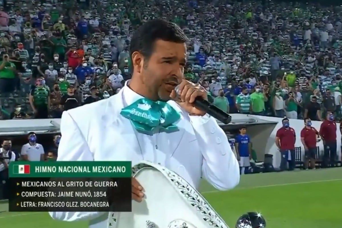 El cantante mexicano Pablo Montero se equivocó al entonar el himno de su país antes del partido de Santos y Cruz Azul que se disputó el jueves a la noche y podría recibir una dura sanción.
