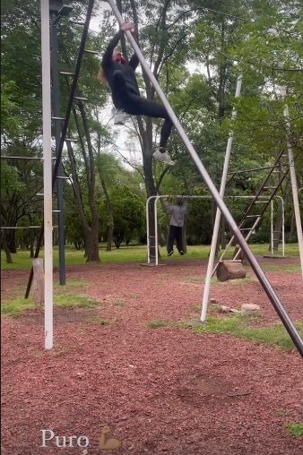 Al parecer, Mati Álvarez salió a ejercitarse en un parque cercano a su domicilio y aprovechó para mostrar que conserva una capacidad atlética envidiable.