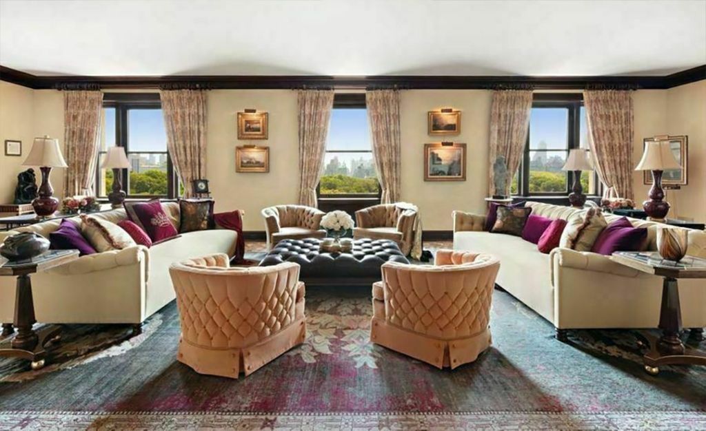 La propiedad tiene un total de 5000 metros cuadrados, con espectaculares vistas al Central Park. Cuenta con cuatro habitaciones, 5.5 baños y una suite separada para el staff. Las expensas mensuales tienen un costo de 21 mil dólares.