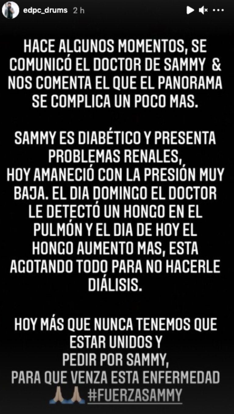 "Hoy más que nunca tenemos que estar unidos y pedir por Sammy, para que venza a esta enfermedad", fue el mensaje que publicó el mánager del comediante ante los rumores de que había fallecido.