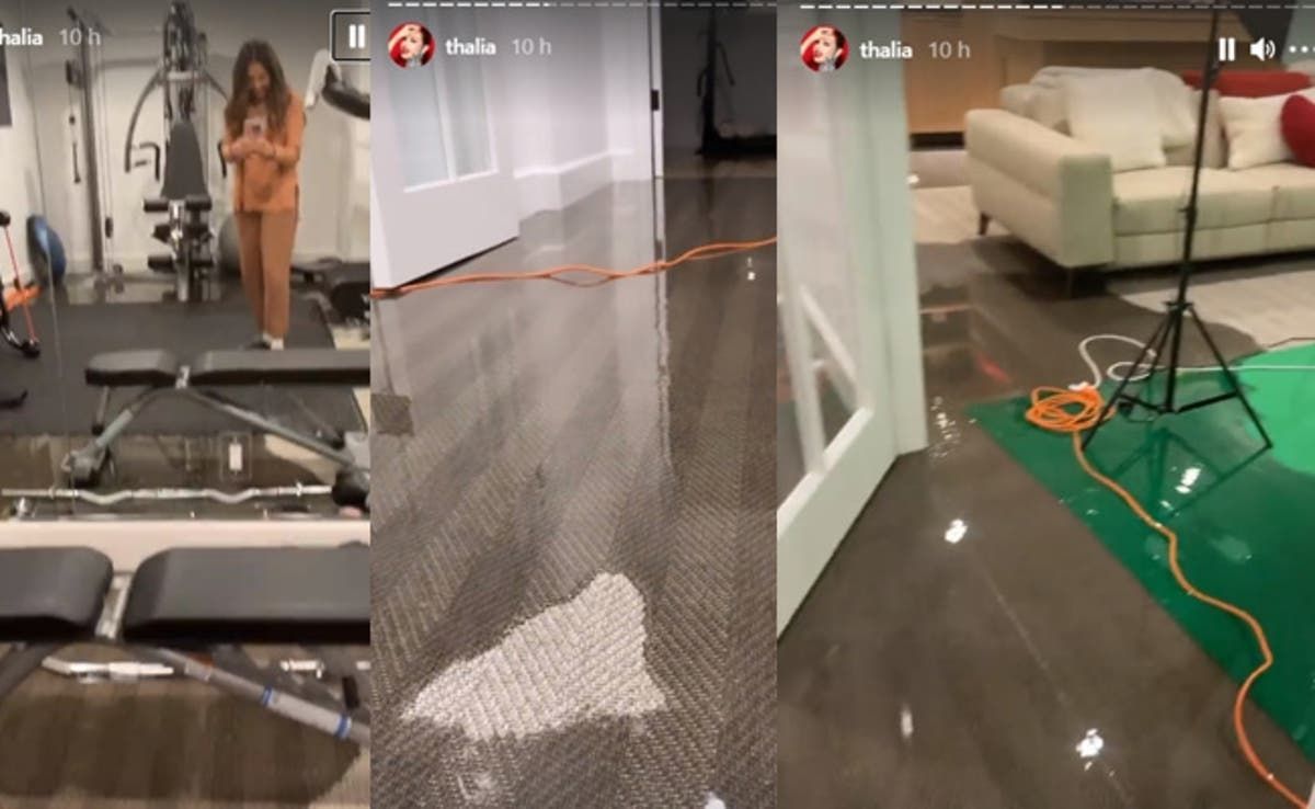 “¡Oh my god, guys! Mi casa se inundó, se está inundando”, dijo Thalía mientras mostraba el alfombrado piso de su hogar valuado en 8 millones de dólares.