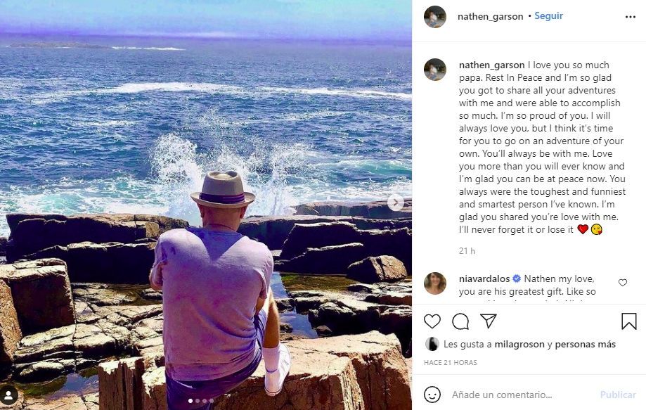 "Te quiero mucho, papá. Descansa en paz. Me alegro mucho de que tuvieras la oportunidad de compartir todas tus aventuras conmigo y de que lográramos tantas cosas juntos. Estoy muy orgulloso de ti. Siempre te amaré, pero creo que es hora de que inicies una aventura propia. Siempre estarás conmigo. Te quiero más de lo que nunca sabrás y me alegro de que ahora puedas estar en paz. Siempre fuiste la persona más dura, divertida e inteligente que he conocido. Me alegro de que hayas compartido tu amor conmigo. Nunca lo olvidaré ni lo perderé", escribió, junto a varias fotos de su padre.