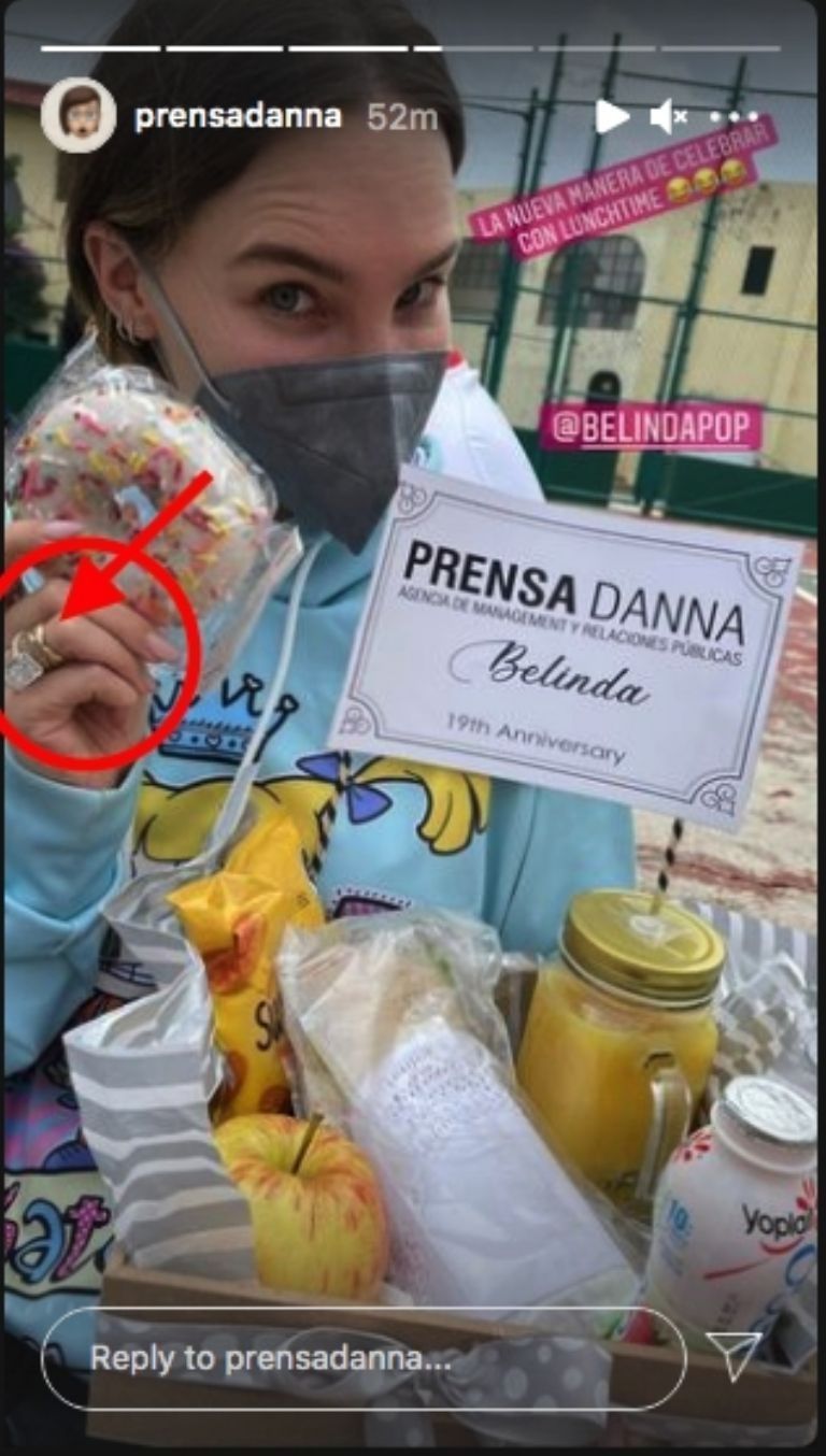 La imagen fue publicada por su representante Danna Vázquez, ya que la artista participó del evento que conmemoraba el aniversario de la agencia de publicidad. Por el momento, ninguno de los dos ha confirmado el rumor en torno al enlace, pero sus seguidores están muy atentos a cada movimiento de las estrellas. Asimismo, muchos especulan que la nueva joya de Beli podría ser otro regalo de su pareja.