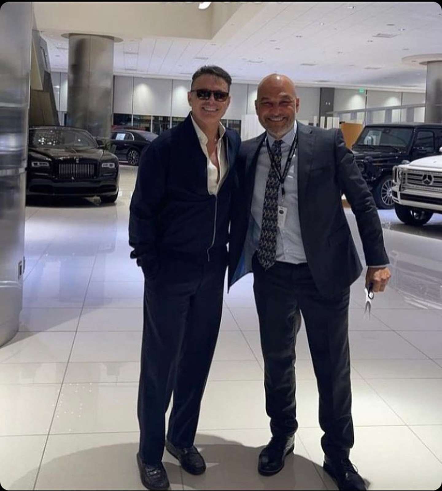 Con varios kilos menos y el cabello corto, “El Sol de México” visitó una concesionaria de autos de lujo y posó con el encargo del lugar en una foto que se volvió viral gracias a la periodista Inés Moreno que la publicó en sus redes.