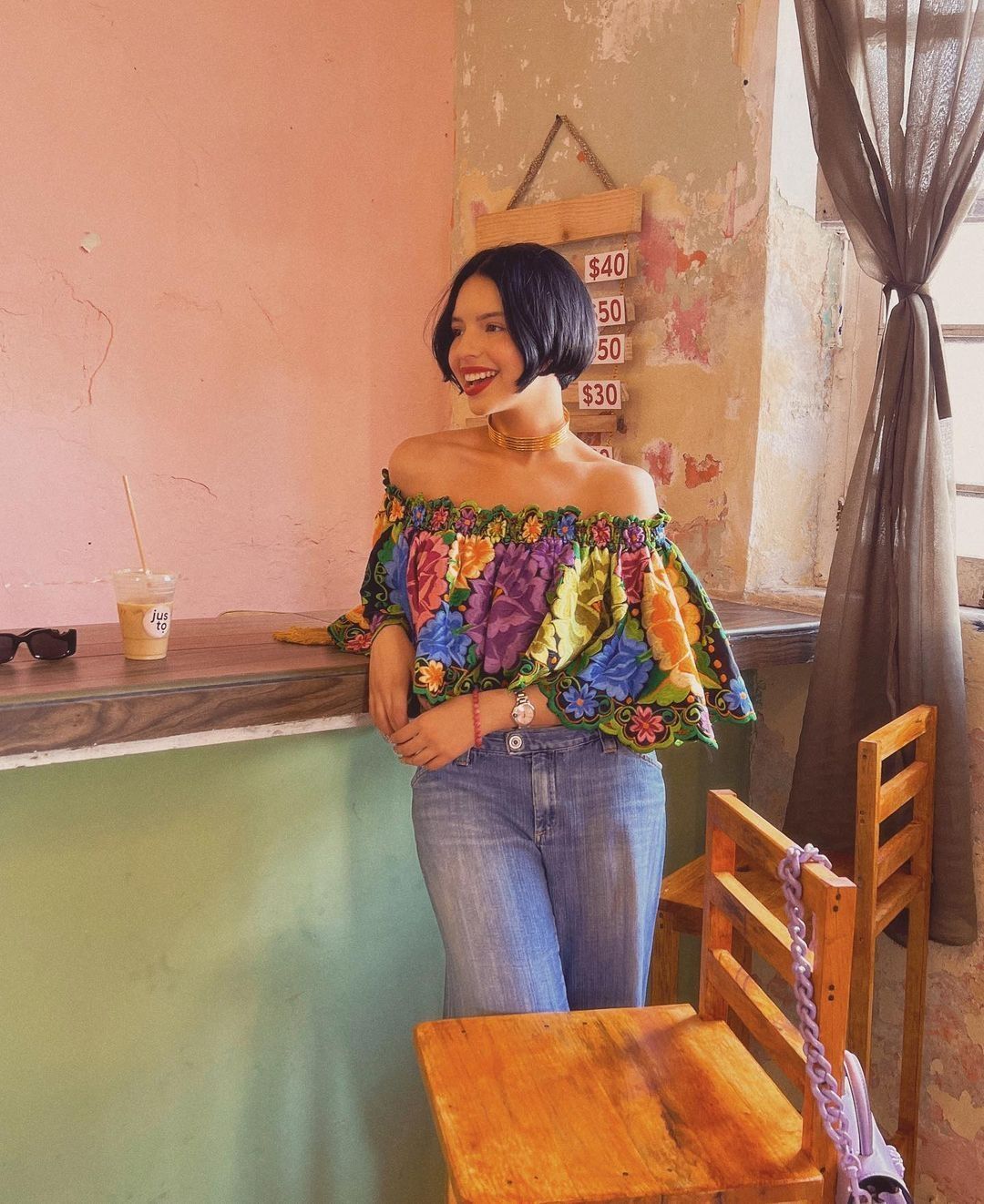 El pasado 19 de noviembre, la joven cantante dio un concierto en la ciudad de Mérida, donde se presentó con un vestido típico de la región. Horas antes se paseó por la ciudad con un estilo muy casual: jeans y un top bordado con flores de diferentes colores.