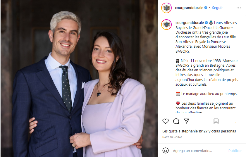 Instagram se ha convertido en la plataforma elegida por la realeza para hacer lo grandes anuncios oficiales. Y, el Ducado de Luxemburgo, no se quedó atrás y escogió esta red para anunciar el compromiso de la princesa Alejandra con el inglés Nicolas Bagory.