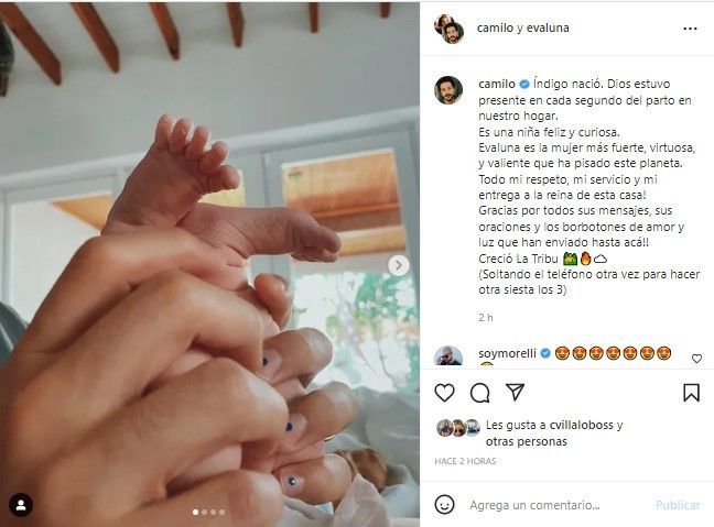 Hace apenas dos semanas Evaluna Montaner y Camilo dieron la mejor noticia a sus seguidores, al anunciar la llegada de Índigo, su primera hija. A través de las redes sociales, la pareja mostró las primeras imágenes de su primogénita, que rápidamente fue recibida con toneladas de amor por parte de seguidores, amigos y familiares cercanos.