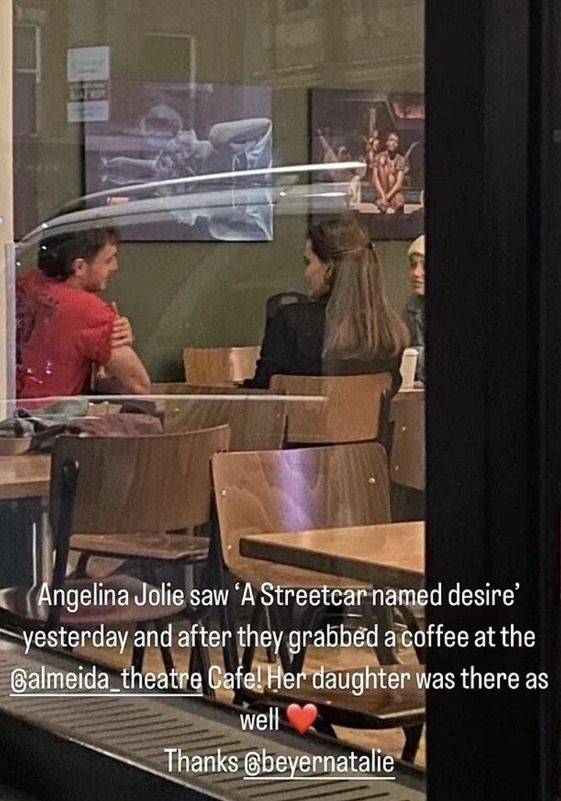 Un fanático captó el momento en el que Mescal tomaba un café con Jolie y su hija. "Angelina Jolie vio 'A streetcar named desire' ayer y después tomaron un café en el @almeida_theatre Cafe", informó el fanático que sacó la foto de la pareja.