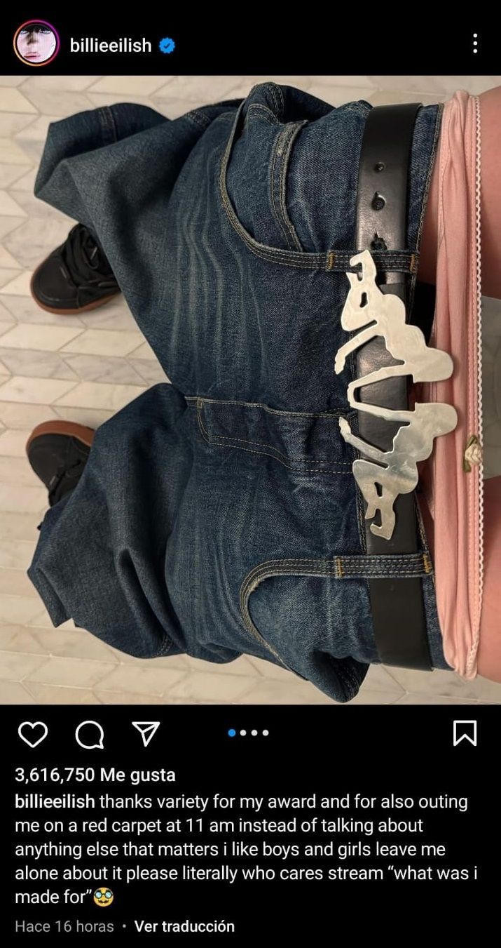 En las últimas horas, la propia artista volvió a referirse al hecho a través de una publicación en la mencionada red social. "Gracias Variety por mi premio y por sacarme del armario en una alfombra roja a las 11 am en lugar de hablar de cualquier otra cosa que importa", escribió la artista. "Me gustan los chicos y las chicas, déjame en paz por favor. Literalmente a quién le importa. Escuchen "what was i made for", finalizó Eilish, pidiendo a sus fanáticos que escuchen el tema que compuso para la película Barbie.