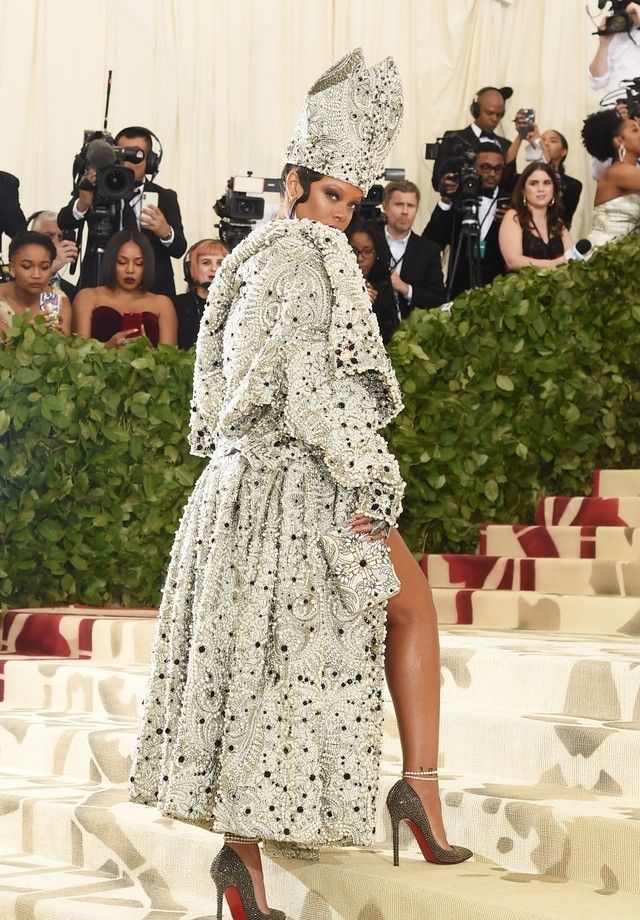 La cantante de Barbados se inspiró nada menos que en el Papa para su look, firmado por John Galliano para Maison Margiela, y en un glamuroso collar Cartier de 1934.