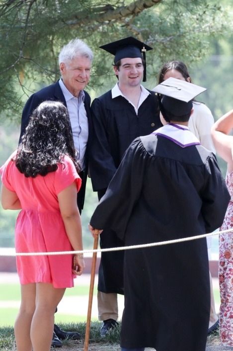 El actor Harrison Ford y su esposa, la actriz Calista Flockhart, asistieron a la graduación universitaria de su hijo Liam, de 22 años de edad. Los actores fueron fotografiados junto al joven, del que se conocían muy pocas fotos.